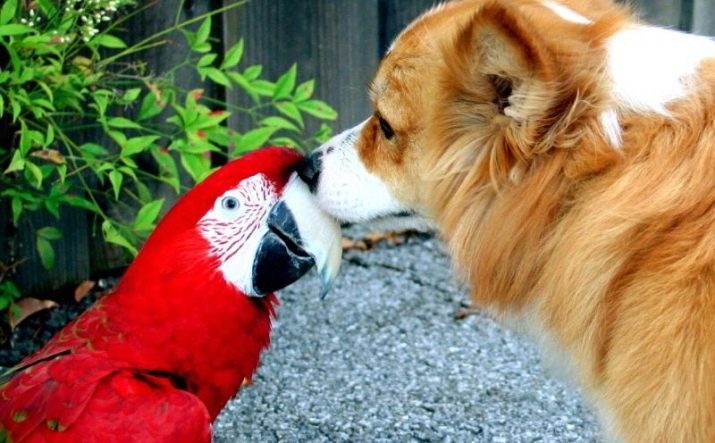 Macaw parrots are brave and very brave birds. If they are attacked, then they give back. But by nature, these birds are quite friendly, they are good for people and other pets.