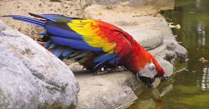 Birds of this species have the ability to heal themselves. Inhabiting near silty shores, they eat particles of clay, thereby purifying their body from harmful substances that come with rotted, spoiled fruits. In addition, a viscous substance is a source of trace elements necessary for the body of macaws.