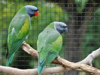 This variety of parrot has a fairly large size. The length of the body can reach 50 centimeters, most of it falls on the tail. The bird weighs about 350 grams. The plumage on the head of a Chinese parrot is blue. It smoothly passes to the abdominal part of the body. The plumage on the wings and back is green. His head is characterized by the presence of black stripes. By the beak, you can set the floor of parrots. In males, the upper part of the beak is red, and in females it is painted black. Birds have high intelligence and need constant attention.