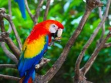 - Ara. Habitat - forests of Latin and South America, central Africa. It has a very bright color. The plumage of birds can combine several colors or be the same color. This is a very large parrot: it can reach 100 cm, with a wingspan of 40 cm. The hyacinth macaw is the largest parrot on the planet. This bird is whimsical to care for: it needs a lot of space, you have to carefully monitor the diet. In addition, macaws make sharp sounds.