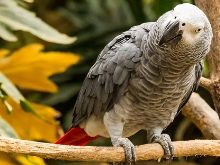 - Gray parrot. Habitat - Central Africa. A rather large bird (40–45 cm) with a hard, curved beak. Another interesting feature of the bird is the tail. It has a bright red or brown color. This bird is the best suited for interacting with humans. Jaco has a wide range of emotions, can learn up to 1500 words and has a developed intellect.