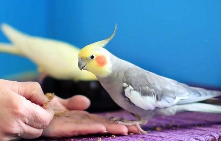 Such manipulations must be carried out only when the bird is in a good mood and has not yet had time to eat - this happens in the morning, after sleep. By regularly repeating this technique, you will teach the bird to expect food and your hand and enjoy eating food from the palm of your hand. And when Corella gets used to this action, you can offer a palm with a treat outside the cell.
