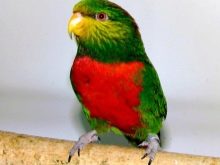 The most common species is the pointed-tailed lory. His back, abdomen and wings are green, his head is blue above and his back is purple; the breast is red with blue, white and yellow spots are present on the wings. Popular species also include rainbow lorikeet, brilliant lory and red lory.