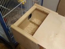 The nesting house should be equipped with a crossbar so that it is convenient for the birds to enter their home. It must be installed a few centimeters below the entrance of the house. If the floor area in the house is too small, the chicks will be crowded, and they can cripple each other. For the entire time that the birds will mate, they need to be given special vitamins, add more vegetables and fruits to the diet, as well as sprouted grain.