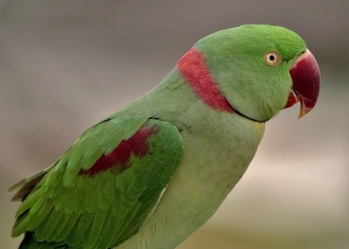 - Himalayan (Psittacula himalayana). It lives in India and Vietnam. Color and size are identical to the previous look. The female has a paler color, and unlike the males, she does not have red stripes on the wings. It is divided into two subspecies living in different areas.