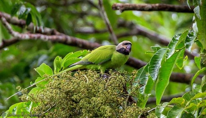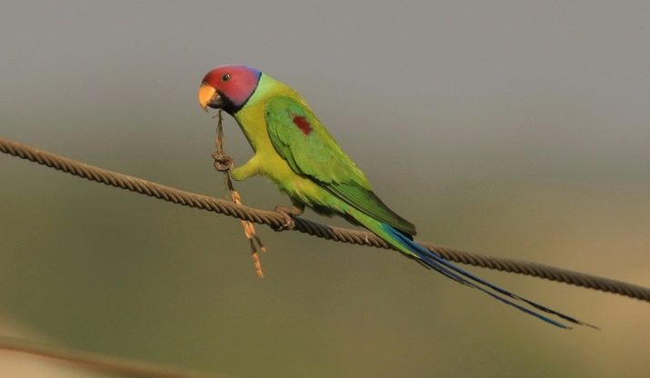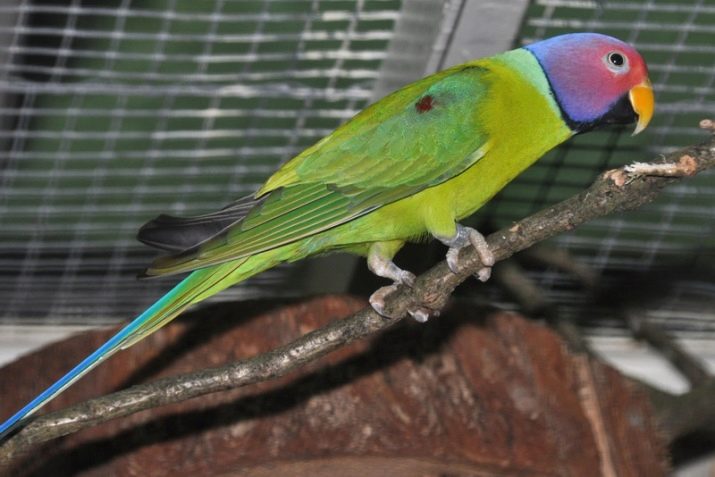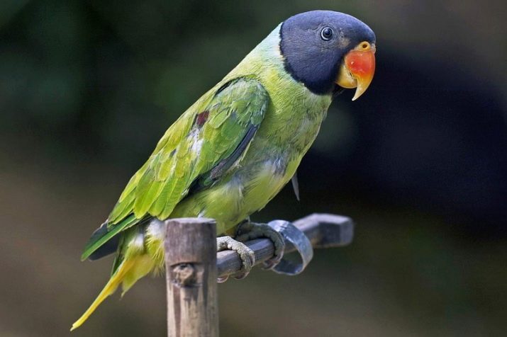 - Gray-headed (Psittacula caniceps). In some sources it is indicated as plum-headed. The sizes are large - in length it can grow up to 50-55 cm. The head, as the name implies, is gray, with a bluish tint, there is yellow fluff on the cheeks and ears. In places there are wide black stripes, a bright orange fringing around the eyes. It lives on the coast of the Indian Ocean. Little studied view.