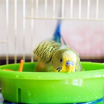 Long exposure to direct sun should also be avoided.Parrots are very fond of swimming. They arrange a “bathing day” for them - they put a shallow but wide tank with clean water on the floor of the enclosure. At the end of the procedure, the "bath" is removed.