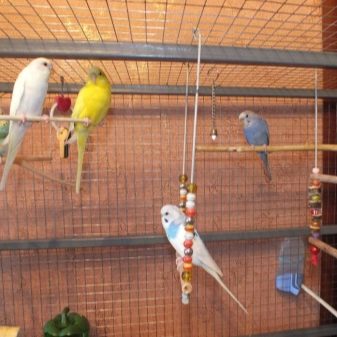 A layer of sawdust or sand is poured on the floor, about 5 centimeters thick. The litter is changed as it becomes soiled; it is better to do this once a week. It is necessary to equip drinking bowls, feeders, perches for sitting, as well as various toys for entertainment and physical activity, for example, ladders, swings, tree branches. Parrots need to be fed 2 times a day, morning and evening, at about the same time. Change the drinking water daily.