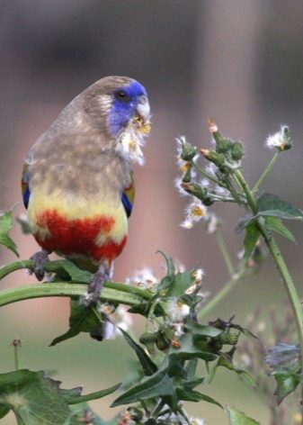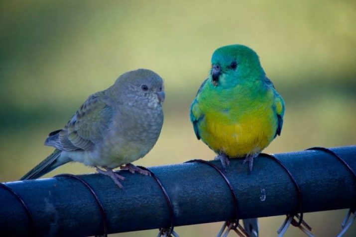 - Yellow-winged, gold-shouldered or Queensland. The males have large golden-yellow spots on the wings in the shoulder area, and red spots in the lower abdomen. Females are grayish in color, with brownish-green hues. These parrots are medium sized, quite calm.