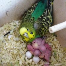 In the natural environment, budgies begin to breed in June. During the breeding season, it is necessary to feed the birds with a grated shell or chalk. This is the rare case when unfertilized eggs need to be removed from the nest, as sometimes the female can lay many eggs, most of which will not bring chicks.