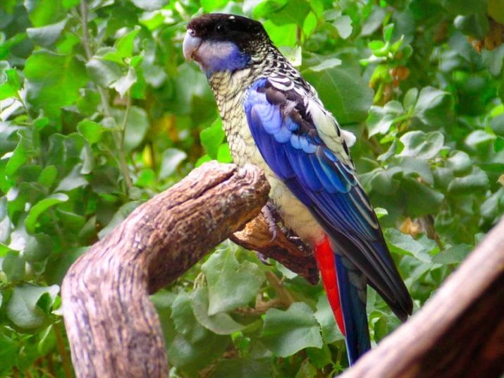 - The motley rosella is divided into three subspecies, which can be found in Tasmania and southeast Australia. The size of the bird is relatively small (the length is not more than 0.32 m, the wing - up to 0.11 m). The bird is distinguished by its elegant plumage. The feathers are black on top, but each has a yellow-green border. The same yellow-green color is characteristic of the lower back as a whole. Bright red neck and chest look very attractive.