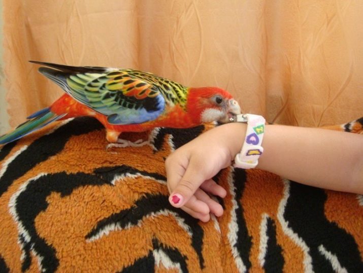 To teach a parrot rosella to sit on his hand is quite possible. The main thing is to take into account the natural conservatism of these birds and not to force the process. They will spend about a month on mastering the house. Next, every morning, carefully approach the cage and begin feeding.Every day you will have to devote a lot of time to the Rosella, otherwise they will not be tamed.