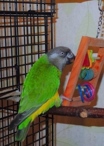 When choosing attributes for a cage, special attention should be given to poles and toys. The poles should have a diameter convenient for the parrot. It is better to abandon thin products and perches made of soft wood. No need to install too many poles, as the bird will have nowhere to turn around in the cage.