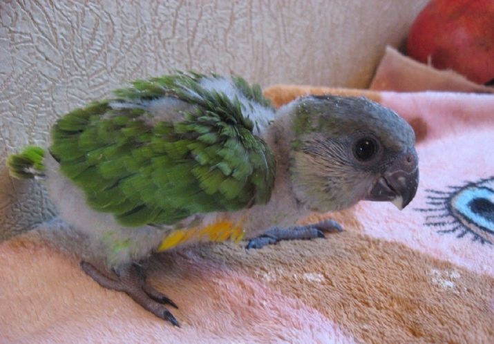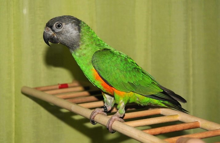 This parrot is an exotic pet native to the western part of the African continent. The length of his body reaches 25 cm, and weight - 170 g. The body of the parrot is strong, and the tail is short and wide. Most often, green individuals are found, only the lower abdomen can have a yellowish or orange plumage. The head is usually large, dark gray.
