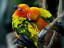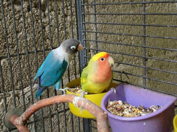 - Lovebirds got their name due to the fact that after the mating season, the birds do not fly away, but remain together. The legend that in the case of the death of one parrot the second can not stand the separation, does not correspond to the truth. You need to try to find a replacement for the bird, and the parrot will get used to the new pair. All 9 types of lovebirds are similar in diet and conditions. Parrots differ in energy and mobility.