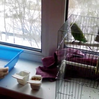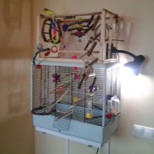 - a lamp (ultraviolet or wide spectrum) is placed in the cage, above it or from the side: even if the room is sunny, this electrical appliance is still required due to the peculiarities of the structure of the eyes of these birds and for their heating.