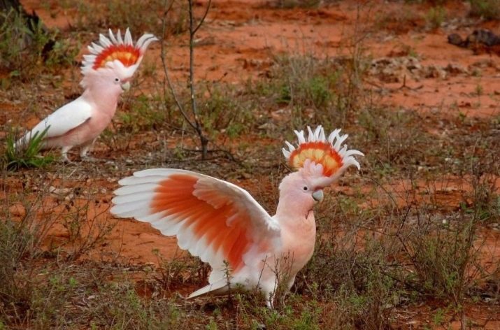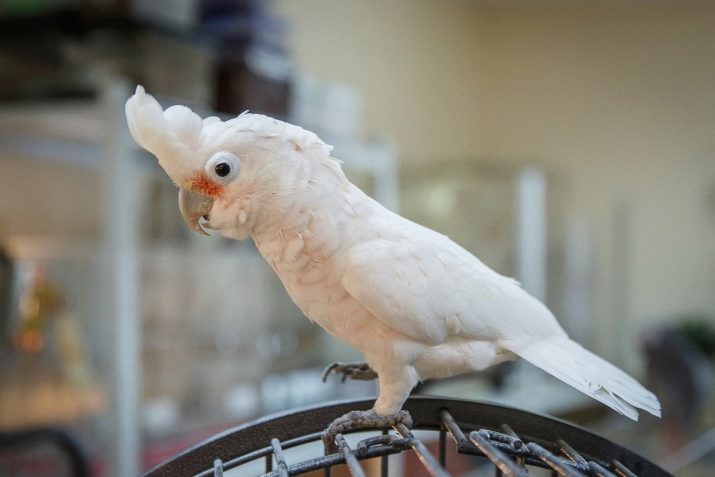 - Large Cockatoo - This is an individual 60 cm long, difficult to maintain. But with proper care, he will live 60-80 years. There are many species of large cockatoo. They differ in white or white-pink, gray colors, but all are crested. Big birds need an aviary, not a cage, made of durable vertical rods. And do not forget that a smart cockatoo is able to open the cage, if it is an ordinary valve. This species is not for beginner breeders: birds have a problem of excessive chewing and biting as a method of raising all people and animals.