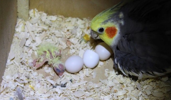 Presumably, the larger the parrot, the longer the female hatches the eggs: wavy ones acquire the first chick on days 16-18, and macaws on days 29-30. If the female has not refused to play the role of mother, then do not interfere in her actions. Only enrich her diet, and also regularly check the nest for dead chicks.