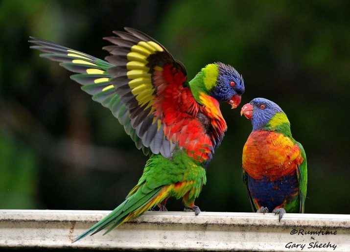 - Lorikeetperhaps the brightest parrots. To maintain color and food should be bright, they love pollen and nectar. They live about 20 years. Friendly, sociable, active, able to repeat sounds and language. Not very noisy, for which they are popular with breeders. A noble or two-color parrot related to lorikeet generally refers to loners.