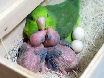 The cage of any feathered one should be clean, and the feeders with drinking bowls should be practically sterile. After the baby is born, this rule does not change, but the nest itself can be cleaned 2 weeks after the hatching of the bird. To do this, it is thoroughly cleaned of all accumulated debris and adhering dirt - at this moment newborn parrots are moved to a specially prepared box with insulation. Keep in mind that hygiene measures should be carried out as quickly as possible, otherwise it is possible to overcool the chicks.