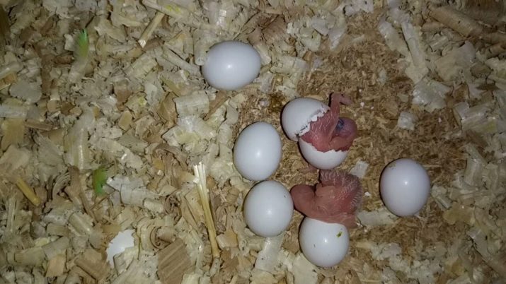The first parrot hatches for 18-21 days, all the rest are selected from the shell with the same time difference with which the eggs were laid.