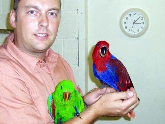 The education of eclectus is a rather interesting occupation. It is easier and faster to establish relations with the male and tame it, while the females are too suspicious and cautious for a long time. Once the bird begins to trust you, the relationship will be very touching, regardless of gender.