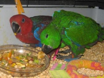 Since the food of eclectus requires cooking, it is often made for the future and frozen. As for grain mixtures, there are 3 types, and all of them must be present in the diet: