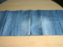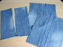 From the old jeans, 6 rectangles 30 * 15 cm in size are cut out (the additive on the seams is taken into account) and stitched. The edges of the internal seams are best processed with a zigzag on a typewriter or processed on an overlock.