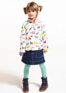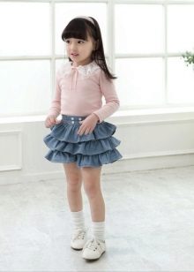 Models of children's jeans skirts impress with their diversity. Little fashionistas love to wear skirts with embroidery. Large floral patterns look beautiful on a blue background. Skirts decorated with rhinestones, trim fabric, with lace and inserts.Models with elastic bands, pockets, prints or buttons, no matter what you choose, remember that a denim skirt is practical and you can wear it not only in the summer.