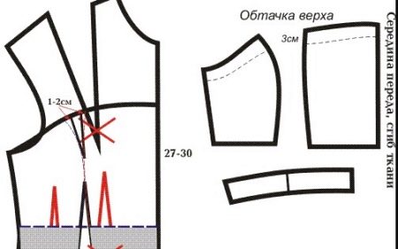 - On the back pattern, you need to make the same changes. In the diagram, with a pencil, outline the new lines of the bodice and back and cut out the pattern.