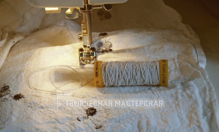 The rubber thread is slightly thicker than usual, so the tension of the lower thread must be loosened. This can be done with a screwdriver, tightening the screw in the right direction. The upper thread is threaded with ordinary thread.