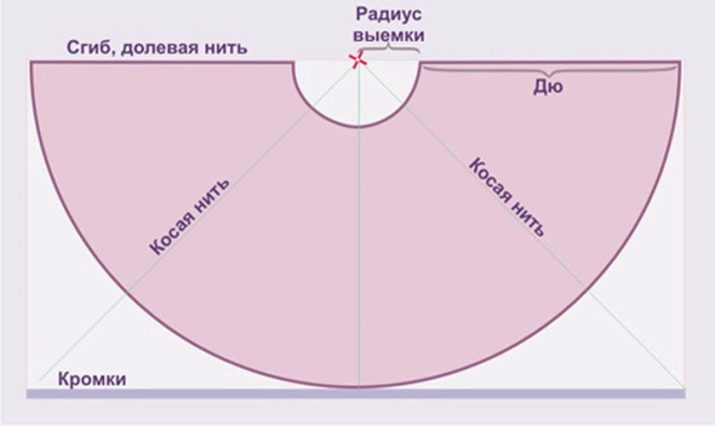 Models with a cutting waist can be cut in parts. If the width of the fabric does not allow to cut a one-piece skirt, then it is cut out along the wedges. In the photo of the dress-dress pattern, the skirt is shown with a bisector of a right angle. She divides the panel of the skirt into wedges.