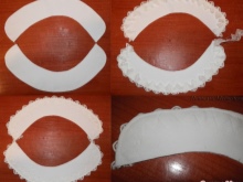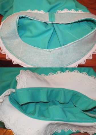 The collar can be decorated with beautiful narrow lace. Lace is sewn along with the collar on the outside. If there is uncertainty about the tailoring of the collar, then you can buy it at any sewing store (we take all parts of the product with us to the store to try on the collar).