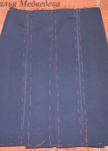 - Attach the skirt to the waist line.Pin with pins (if necessary), sweep. Trying on a sundress with a draft is required. This must be done to correct all inaccuracies before sewing. Only after trying on the waist is a machine line.