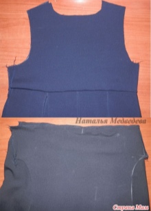 - Sew and stitch the shoulder and side seams. If during fitting the fabric will puff, then there are not enough tucks on the chest.