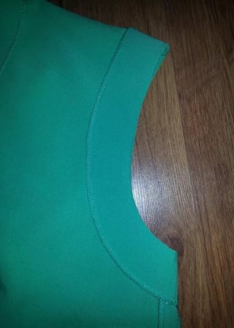 - I will process it with a sharpening or oblique inlay. A slanting inlay can be taken to the tone of a sundress or the contrast of the product. This is done at the discretion of the seamstress. The photo shows examples of the processing of the neck and armhole.