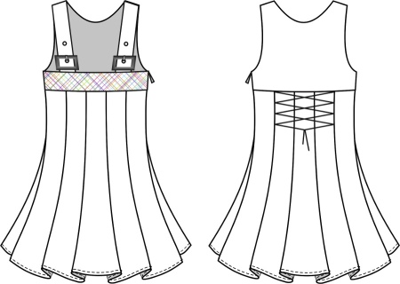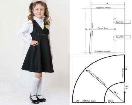 A similar model has the style of a skirt-sun and straps. The pattern is designed for size 122-60. Any clothing size is determined by the circumference of the chest. Chest girth divided by 2.