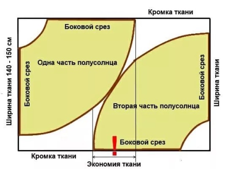And now we proceed to cutting and sewing. Lay out the finished patterns on the fabric. The bodice and skirt are laid out along the shared thread down.