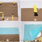 - The upper part of the backpack will be sewn from two pieces of 25x25 cm, in which we cut corners of 7 cm on each side.