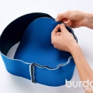 - From neoprene, matting and glue, we cut out one round part and glue them with an iron, placing a circle of adhesive tissue between the neoprene and matting. We do exactly the same with 43x13 parts cut out of leather, neoprene and adhesive. In a rectangular glued workpiece, we perform a side seam and attach to it, departing from the edge of 1 cm, a circle.