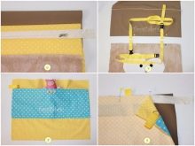 - Cuts of fabric of various sizes for pockets, paws and head. For the upper pocket and the lining side of the ears - 50x100 cm, the lining fabric for the legs - 50x50 cm and for the lower pocket - 50x90 cm.