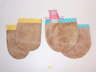 - We prepare parts for paws. To do this, we cut four parts for each paw: two for the lining, one main of the terry cloth and one of the fabric that does not allow moisture to pass through.