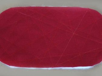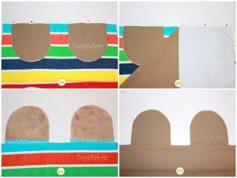 - Then we cut out two parts from the lining fabric and one of the same size from the moisture-resistant fabric. Sew parts of the ears with lining fabric and set aside.