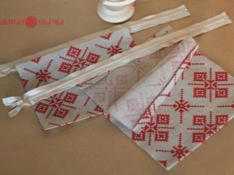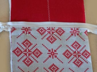 - Now we are preparing knapsacks. To do this, we turn the slices from the long sides inward, then fold them in half and iron both parts. We insert a lightning between them and sew.