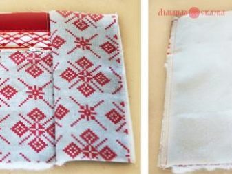 - We unfold the part of the bag with a short lining, put a rug and a lining fabric measuring 25x47 cm face down on top. We combine slices and grind parts. Now we combine the cuts of the pocket in which there will be a rug, and grind along the sides. We twist and stitch the bottom of the lining. Sew the bag in a circle.