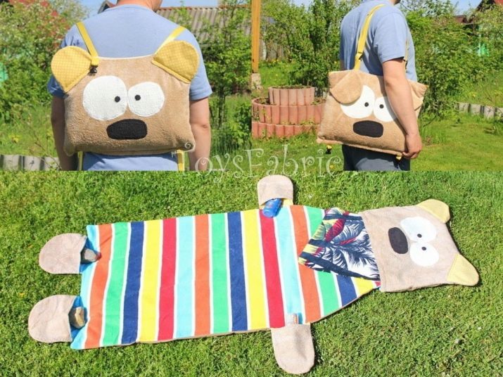 To go to the beach, you can sew a comfortable and functional backpack with a rug in the shape of a bear.