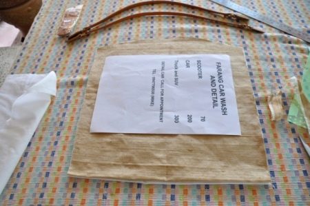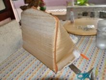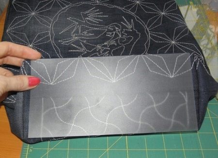 - Having assembled the inside on a sewing machine, the lining is connected to the base and remove the temporary lines. To give stability to the bottom, before connecting the milestone and lining, you can strengthen the bottom with a part cut out of a plastic envelope or plastic kitchen board.