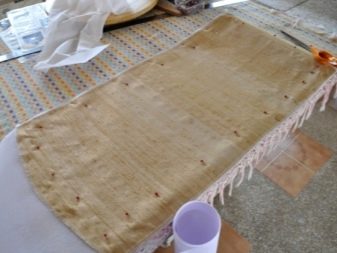 - The cut canvas is applied to the cushioning material, cut to size and chip along the contour. Such a sealant has a rough texture, due to which it “sticks” well to the main textile: it does not need to be glued.
