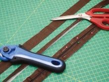 As a basis, you need to take a cotton fabric of five different, combining colors. This technique requires a ruler and a curly pattern: a smooth edge is not always enough. So it will be much easier to lay an impeccable line.