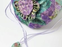 - A “handle” made of a thick cord must be fixed using the original loops on the upper edge of the bag. It remains to stretch the cord through them and close the ends with flower buds.